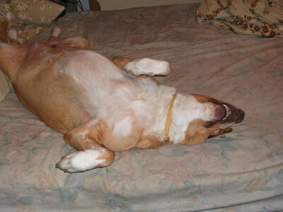Так они и лежат, собаки, когда жарко - максимальный доступ воздуха к телу...