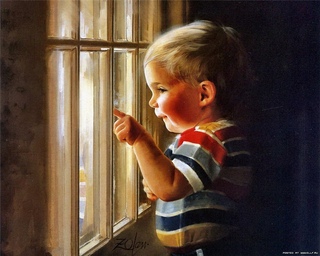 (от лица маленького Антошки) Мне всё интересно там, за окном!