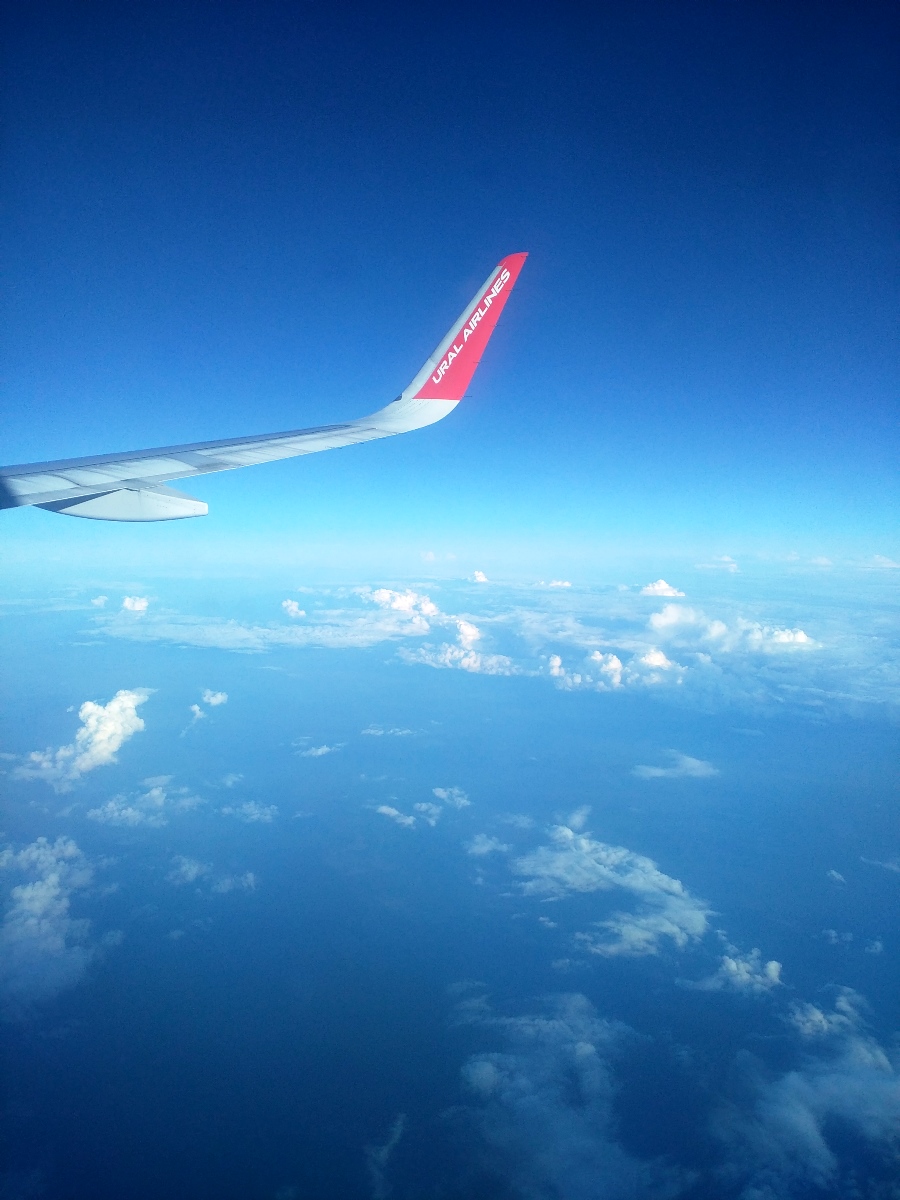 Если вы любите летать и вам не безынтересно, что происходит за бортом, летайте самолетами Аэрофлота. У них есть потрясающая функция экранов – можно видеть все, что видит пилот, причем с любого ракурса, выбранного вами. В ясный день (а мне повезло) карта на экране воплощалась на земле при взгляде в иллюминатор: ленты рек, и бесчисленное количество озер, материковая линия и северные моря.