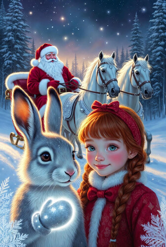 Он взмахнул посохом – и по всему миру в окнах зажглись тёплые огоньки, а под детскими подушками и в носках появились давно потерянные сокровища. С тех пор каждый Новый год в том северном городке можно увидеть серебряного Зайца, который скачет впереди саней Деда Мороза. А если присмотреться, на его левой лапке до сих пор сияет та самая варежка, только теперь она светится ещё ярче – от благодарности и волшебства.