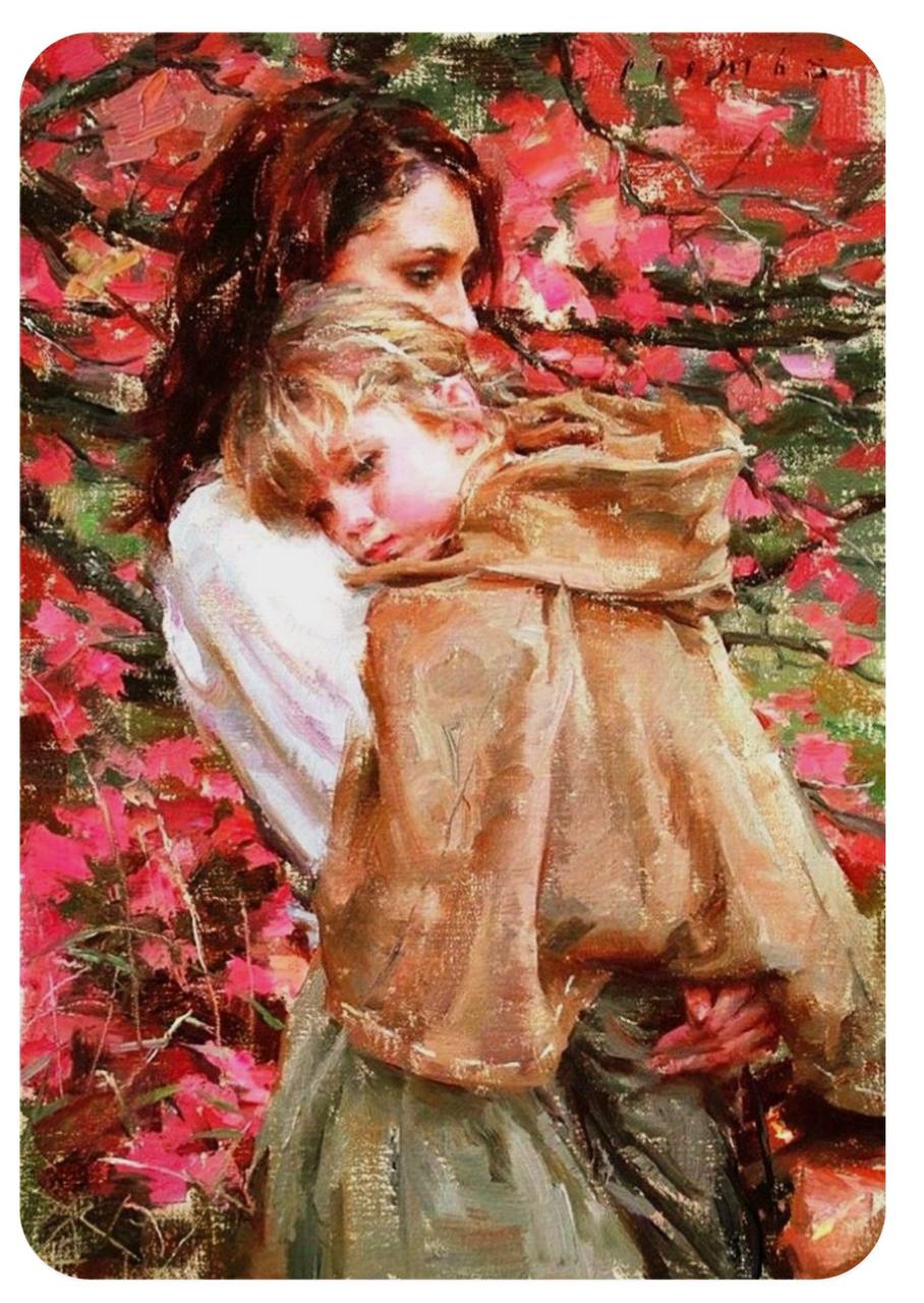 Храни всех мам в своём саду, Господь!_Ирина Ашомко http://litgalaktika.ru/publ/10-1-0-27181 Стихотворение – лирическая молитва, вознесённая не только Богу, но и самой идее материнской любви как божественного акта. Материнская молитва здесь – не прошение, а действие: она «со дна достанет», «в битве сохранит», заставит «отступить всех врагов». Это не пассивная забота, а активная духовная сила, способная изменять реальность. Строка: «Слова их в небо ангелы несут…» – превращает каждое шёпотное «Помоги…» в часть божественного порядка. Финал – «Храни всех мам в своём саду, Господь! / Любовь их светлой радугой в сердцах» – завершает стихотворение на ноте благодати: материнская любовь не исчезает, а становится внутренним светом, дарованным каждому из нас.