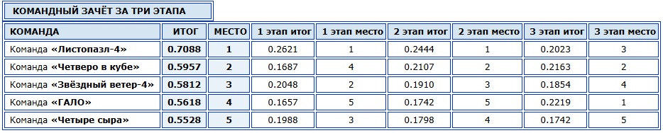 Молодцы:) Правда, в третьем туре немножко (подчеркну, немножко) расслабились, по нашему мнению:)) но запас очков за два тура, конечно, был уже