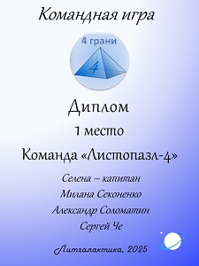 Поздравляем команду «Листопазл-4» с победой в командной игре «Четыре грани – 4»!