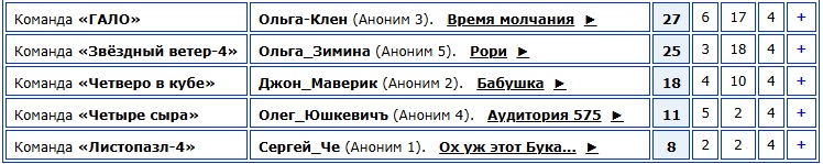 В первом этапе победила Команда «Листопазл-4». Во втором этапе победила Команда «Листопазл-4». В третьем... скоро узнаем:)