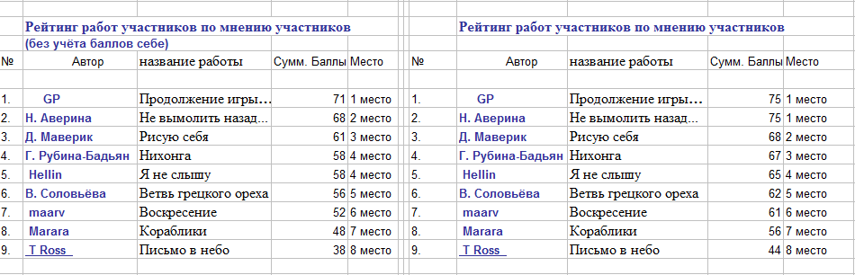 Рейтинг работ помнению самих участников. Для увеличения картинки кликните её.