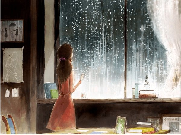 На стекло дождинки сели.