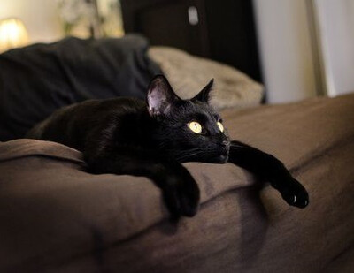 Ночь кошка провела среди диванных подушек — никто ж не заметит, но с рассветом вернулась на место добровольного изгнания.
