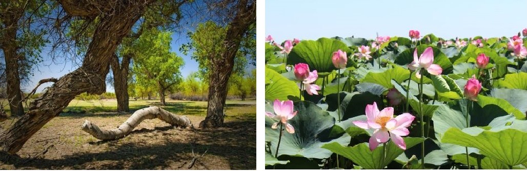 Сначала по обеим сторонам дороги пролегали унылые солончаки. Изредка появлялись засохшие деревья из-под барханов. Потом виднелись одинокие зеленые деревья, и вдруг неожиданно появился лес. Трудно было поверить, что это не мираж. Таинственное дерево туранга растет в низинах пустыни, где летом стоит страшный зной, а зимой – лютый холод. Такламаканская туранга доживает до тысячи лет, а потом, упав и не тлея, может лежать в песках еще тысячу. Но самое удивительное – из упавшей туранги, засыпанной песком, могут появляться зеленые ростки, которые вновь превращаются в деревья!
