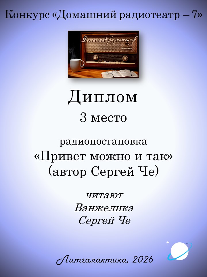 Поздравляю победителей! И всех причастных! Потому что в этом конкурсе выиграли все! Уверена, все участники получили положительные эмоции при создании радиопостановок. И авторам приятно получить такие подарки) ( Спасибо за конкурс, Женя!