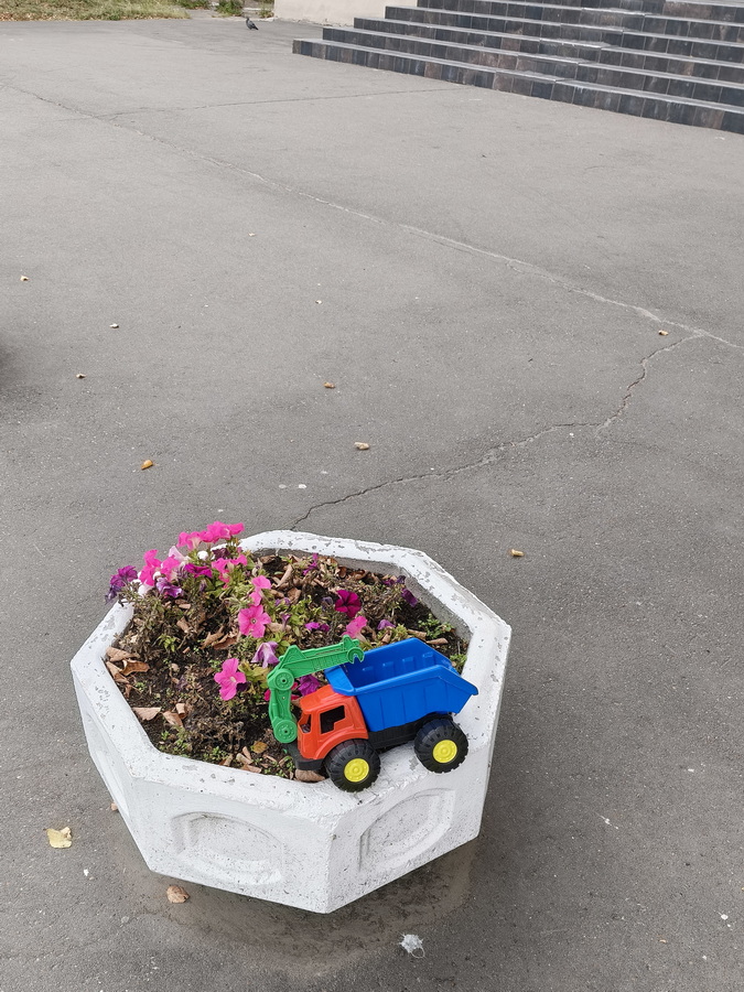 1. Чтобы не затоптали, отдохну в клумбе... (Сергей_Че) --- 2. Я свою территорию убрал! А у вас субботник продолжается... (Наталья_Сафронова) --- 3. Я с детства парковался на газонах. (Галина_Пиастро) --- 4. Оазис нужен хоть такой в тоске пустыни городской. (Арсений_Платт) --- 5. У мальчиков свои цветочки. (Shatory) --- 6. Бесплатная парковка (Владимир_Петько) --- 7. Прикинусь цветком, авось прокатит. (Виктория_Соловьёва) --- 8. Посильный вклад в общегородской субботник (Ирина_Архипова) --- 9. Инородное тело. (Ольга_Альтовская) --- 10. - Дюймовочка! Самосвал заказывала? (Елена_Картунова) --- ---